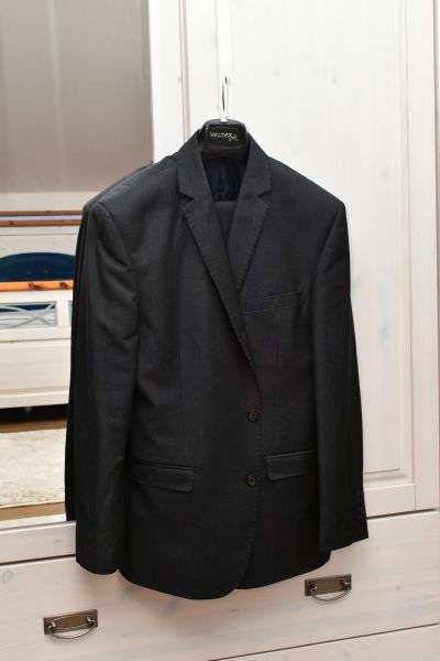 Barva: černá Velikost: 42 Materiál: sako - 73% polyester, 18% viskóza, 9% vlna, podšívka - 50% viskóza, 50% polyester kalhoty - 73% polyester, 18% viskóza, 9% vlna
